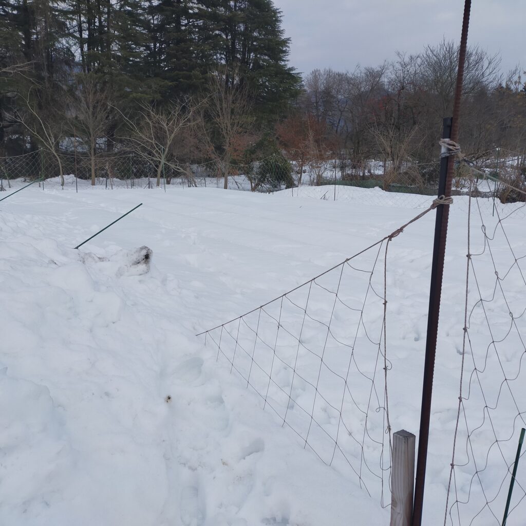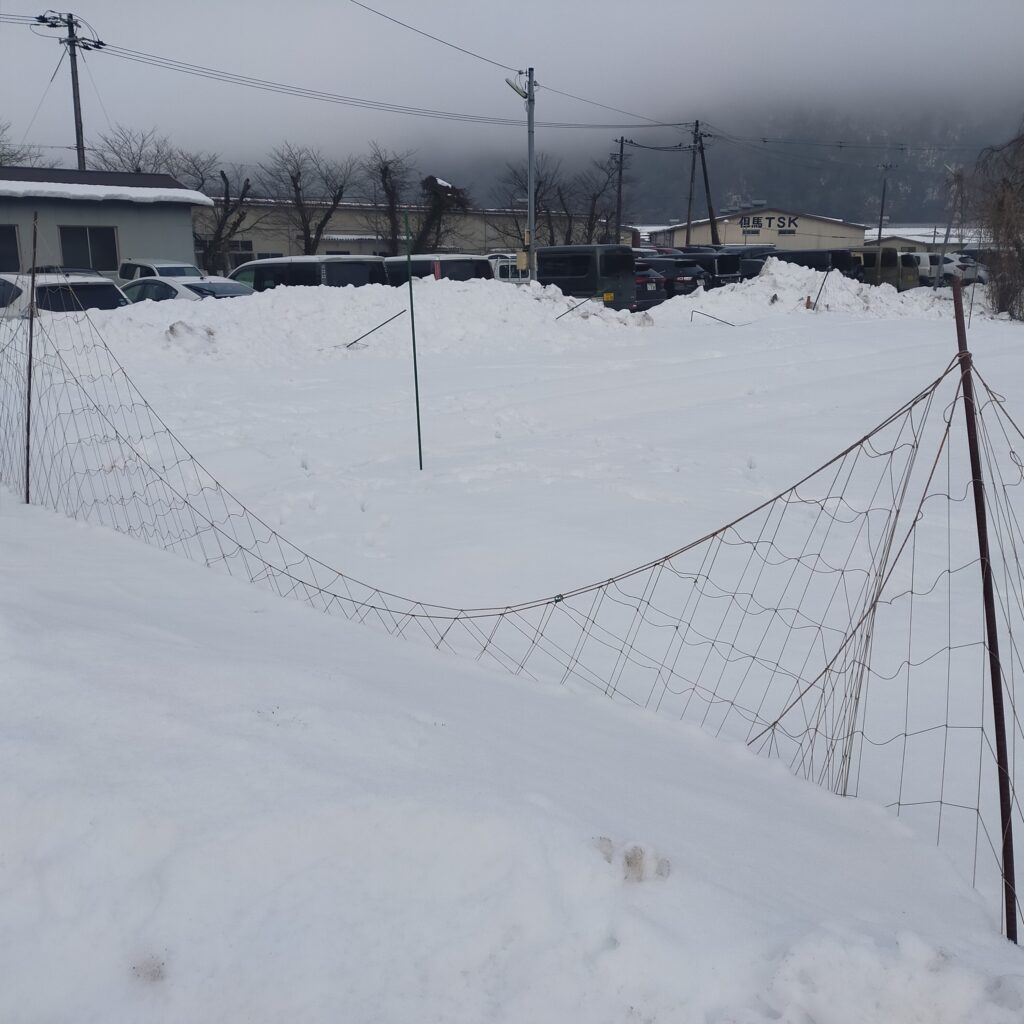 積雪後に畑の防獣ネットの確認に行ったら悲惨な状態になっていた。😰
